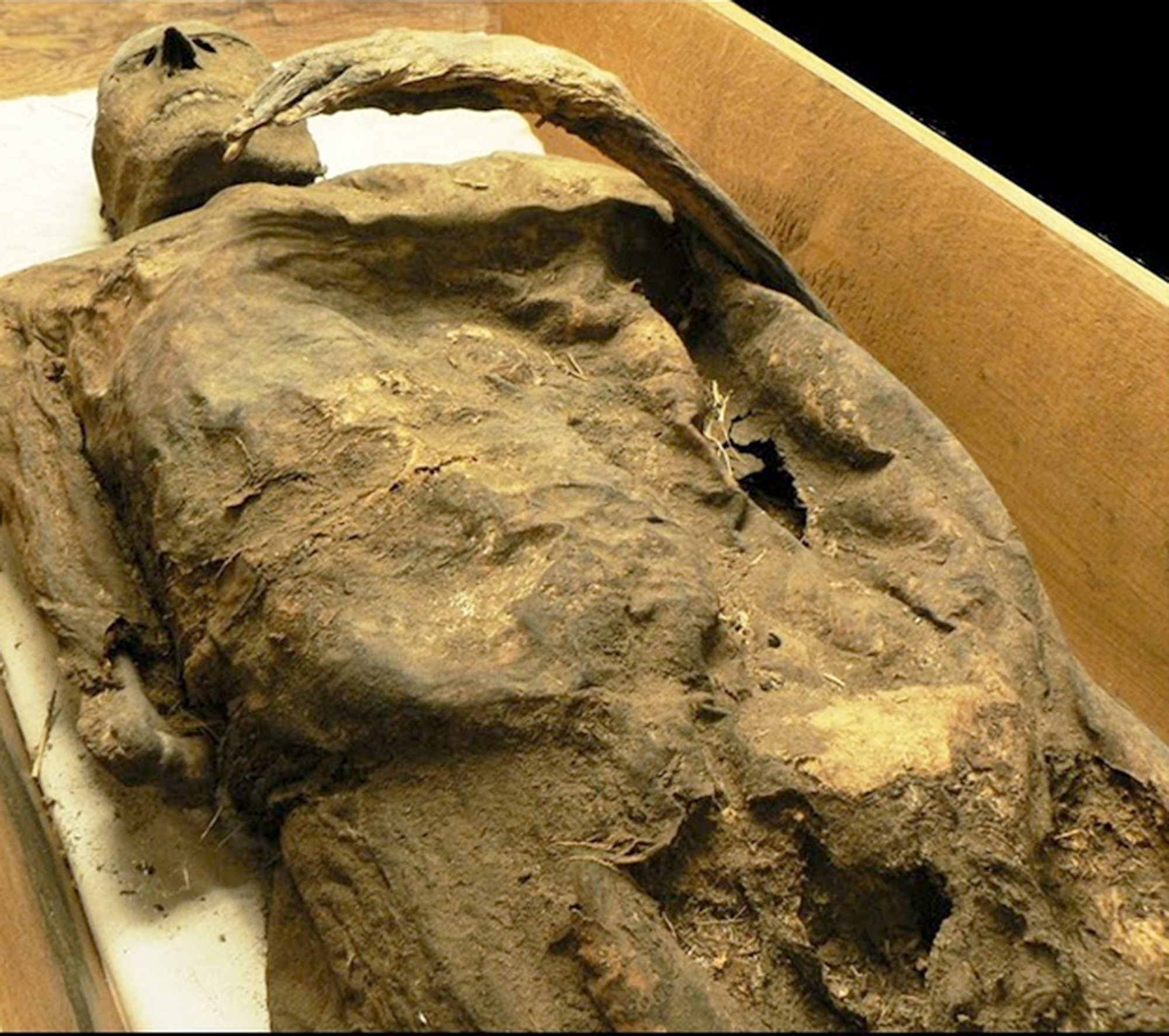 Muumion pää ja torso ovat tallella, mutta niskanikamista vain yksi. Sen sijaan oikea käsi kyynärvarresta alaspäin on kateissa. Se on voitu varastaa pyhäinjäännökseksi joskus 1800-luvun lopulla, jolloin reliikkikulttuuri oli yhä voimissaan.