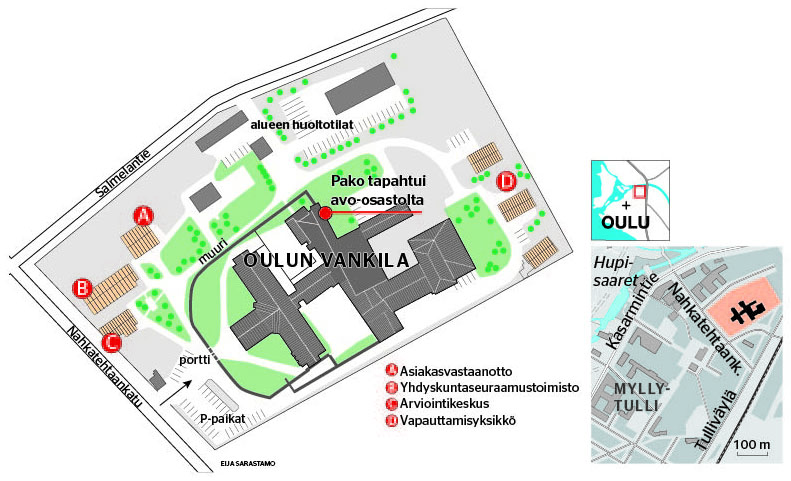 Oulun vankilan apulaisjohtaja Tapio Iinatti kertoo, että miesvangit ovat karanneet avoimelta osastolta, joka sijaitsee kuitenkin suljetun vankilan puolella. Avoimen osaston rakennus on osa muuria.